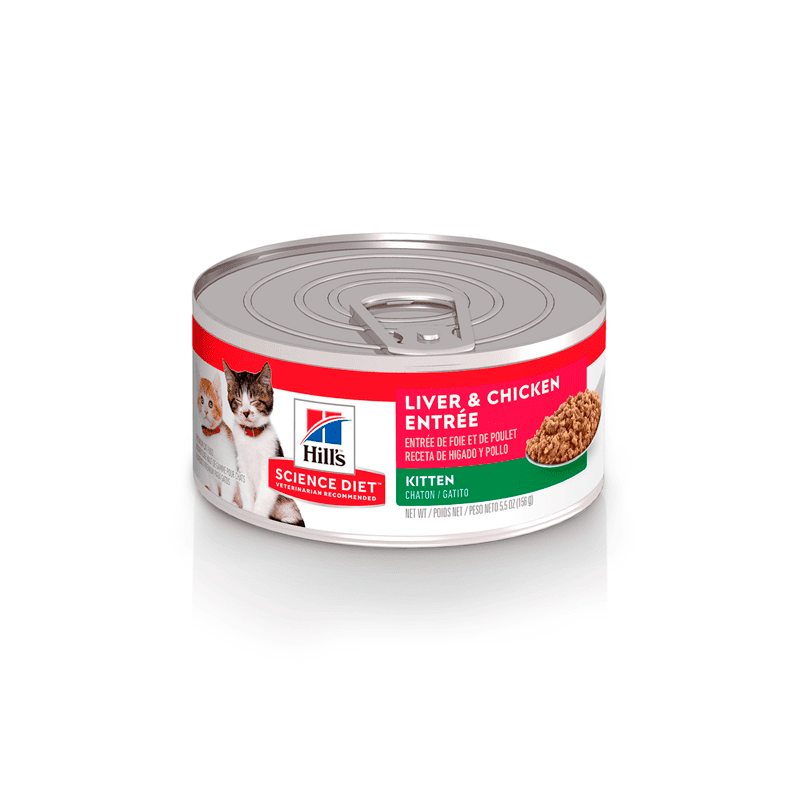 Alimento para gatos Science Diet® Kitten Liver & Chicken Entrée con su textura lisa y suave. Cuidadosamente formulado para las necesidades de desarrollo de los gatitos, para poder tener el mejor comienzo en la vida y crecer a su máximo potencial.